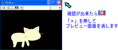 | 一度、プレビュー画面で動作チェックしてみてください。尾っぽが滑らかに動けば次へ |