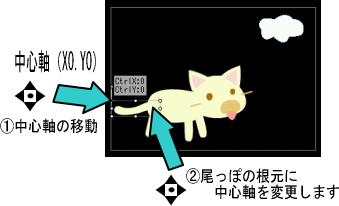 | 目・尾っぽ・耳・雲などはまだ1コマ分で消えてなくなりますが、まだ設定してないだけです |