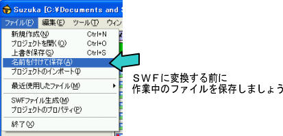 | ファイルの保存・・・・一度SWFに変えてしまうと編集作業ができなくなるので保存してください | |||||||||||